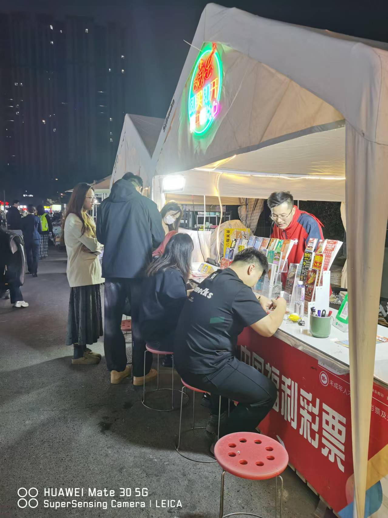 10月30日,邳州繁華的金街步行街,當(dāng)夜幕降臨,邳州福彩夜市刮刮樂地推活動(dòng)拉開帷幕。